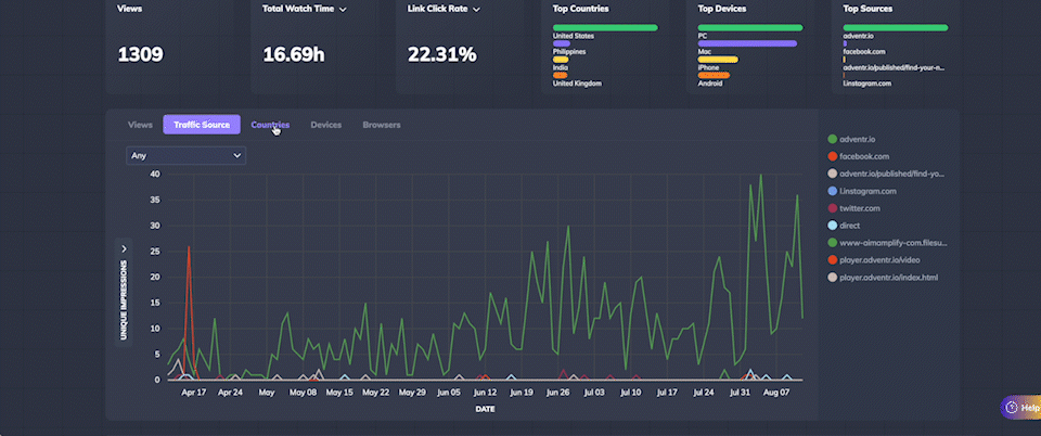 All Adventr accounts include access to play-count charts, where you can see a daily count of plays. If you upgrade to one of our premium plans, you can also see average viewing time per viewer and unique loads per day.