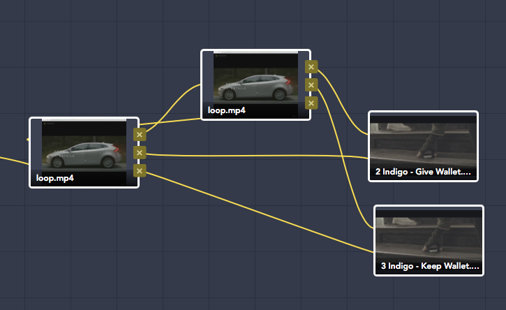 - Now you'll have a clip that auto-loops at the end of your video. The next thing you want to do is add your next choices to the canvas and draw connections to them from both of the loop clips.