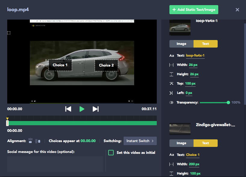 - In both loop clips, change the choices-appear time all the way to 00:00 (start of the video).